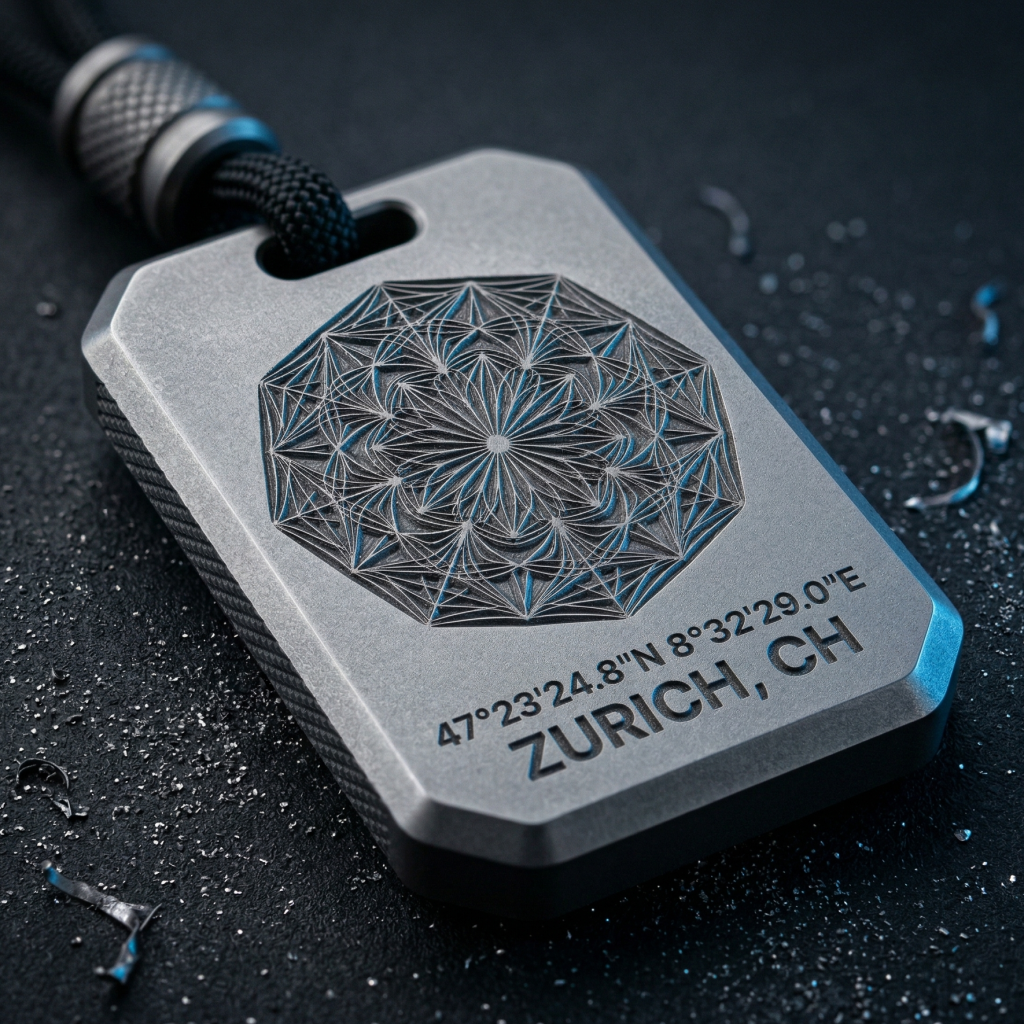 Translate your digital identity into a physical artifact. Custom Titanium keychains featuring precision-etched encrypted symbols and tactical geometry.